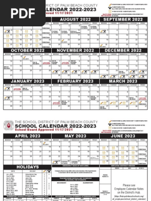School District Of Palm Beach County 2022 23 Academic Calendar Pdf Academic Term Educational Organizations